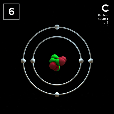 El carbono se representa con el símbolo C y tiene número atómico 6, lo que significa que posee 6 protones en su núcleo y, en un átomo neutro, 6 electrones girando alrededor del núcleo.
